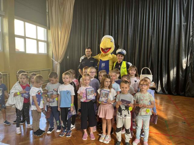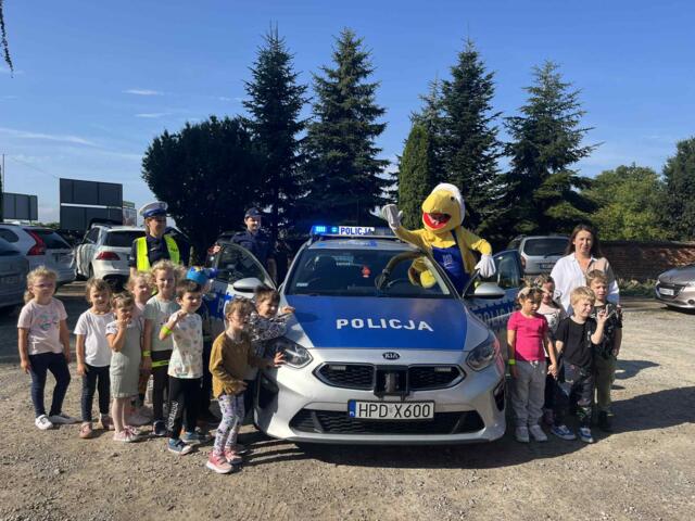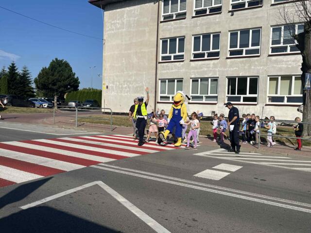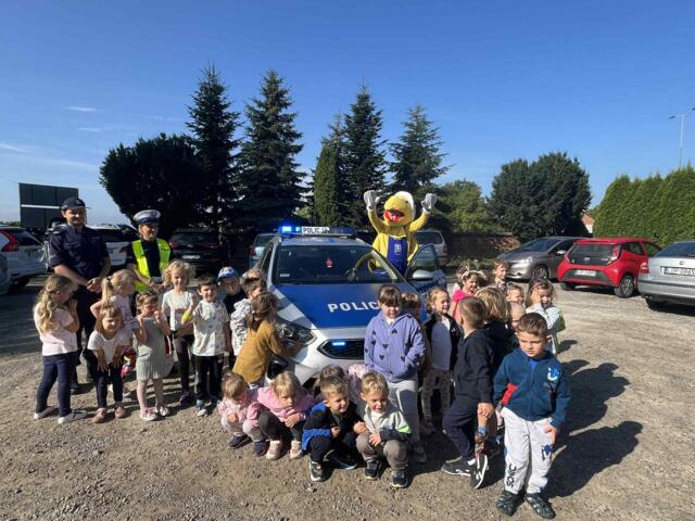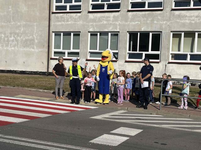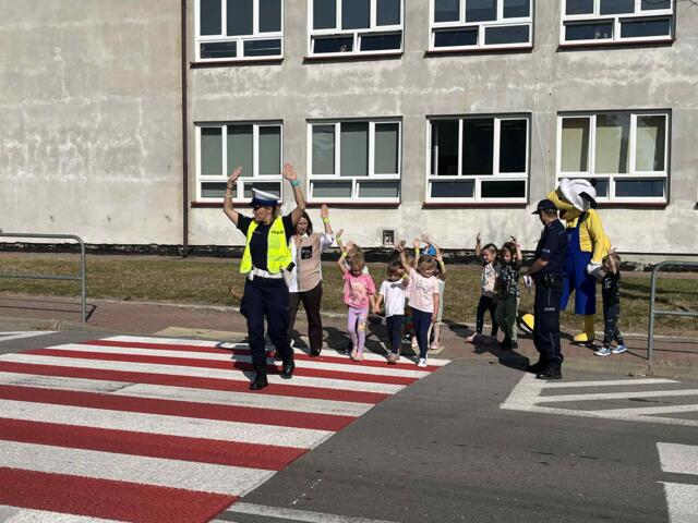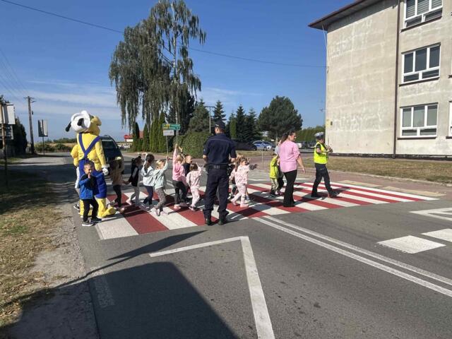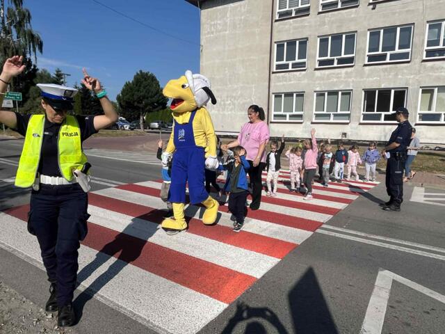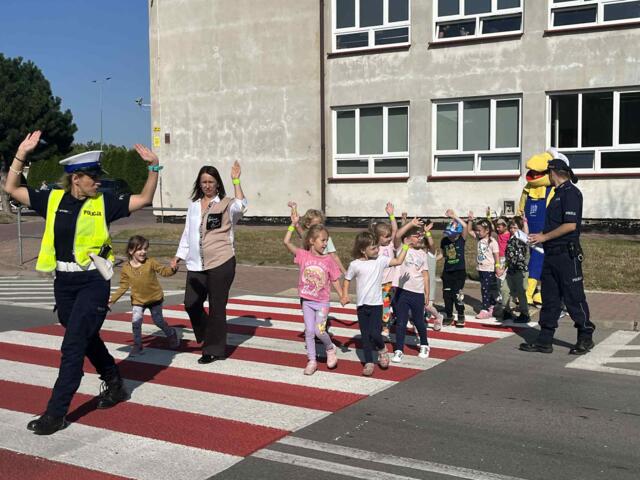 Przedszkolaki brały udział na świeżym powietrzu w nauce przejścia przez pasy na