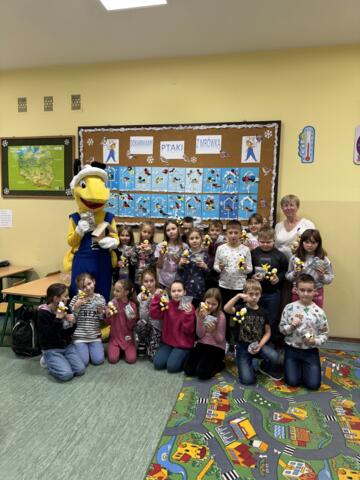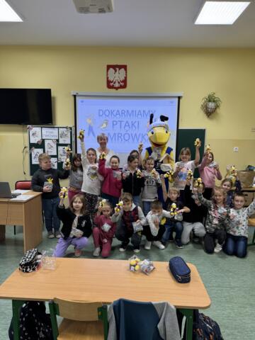 Uczniowie otrzymali pokarm dla ptaków oraz karmniki ufundowane przez firmę Planta. A od Mrówki otrzymały upominki w postaci odblaskowych breloczków, książeczek oraz maskotek. Nie zabrakło również konkursów oraz nagród.