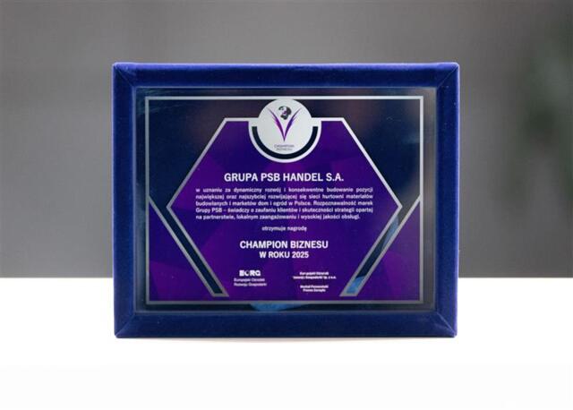 Grupa PSB Handel S.A. została uhonorowana prestiżowym tytułem „Champion Biznesu 2025”, przyznawanym przez Europejski Ośrodek Rozwoju Gospodarki. Wyróżnienie to trafia do przedsiębiorstw, które wyróżniają się odpowiedzialnym zarządzaniem, skutecznym planowaniem strategicznym oraz partnerskim podejściem do rozwoju społeczno-gospodarczego.