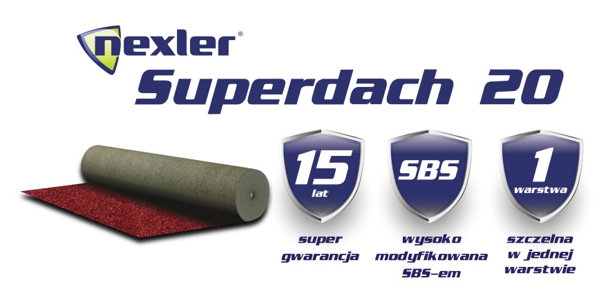NEXLER Superdach 20 posiada pasek brzegowy, umożliwiający łatwy montaż łącznikami mechanicznymi i klejem bitumicznym.Przy wyborze pokrycia dachu skośnego warto postawić na membranę NEXLER Superdach 20. Jej unikalna budowa i bardzo wysokie parametry fizyko-chemiczne pozwalają wykonać pokrycie dachu w jednej warstwie uzyskując 15-letnią gwarancją producenta.