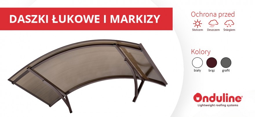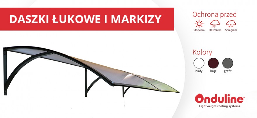 Daszki balkonowe z poliwęglanu ONDULINE dostępne są w trzech uniwersalnych wariantach kolorystycznych, co pozwala na zastosowanie ich w każdej aranżacji. Warianty kolorystyczne dostępne są od ręki, dlatego nie ma konieczności oczekiwania na zamówiony produkt. Wszystkie daszki tarasowe malowane są proszkowo, co nie tylko podkreśla ich wygląd, ale także zapewnia zabezpieczenie przed korozją. Taka technika wykończenia nie wymaga pielęgnacji, co jest wygodne z punktu widzenia użytkownika.