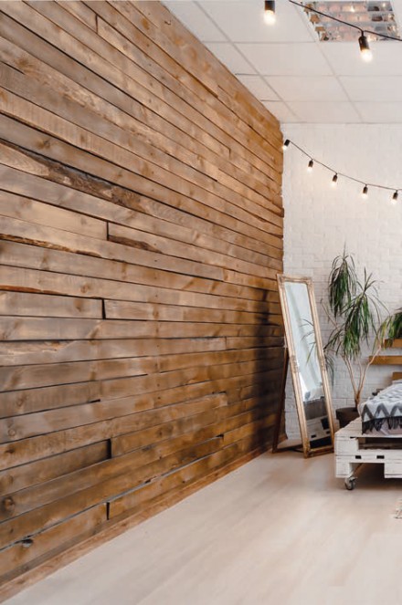 Oryginalny wygląd można nadać wnętrzu, sięgając po ścienne panele drewniane zbudowane z płaskich lub przestrzennych elementów. Niepowtarzalność każdego modułu panela może wynikać z unikalnej struktury drewna albo sposobu jego cięcia – może być ono cięte wzdłuż lub w poprzek słojów, co również zmienia wygląd. Można nimi wykończyć ścianę na całej wysokości albo tylko na jej fragmencie, np. układając je w formie lamperii lub dekoracyjnego pasa czy obrazu. Przestrzenny efekt paneli ściennych osiąga się poprzez formę pojedynczych modułów np. ostrosłupów czy graniastosłupów lub odpowiednie ułożenie elementów, m.in. w struktury przypominające nachodzące na siebie łuski lub poprzez łączenie kawałków drewna o różnej grubości.