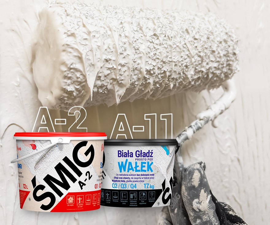 No dobra, ale zapytacie się teraz czy kolor szpachli ma jakiekolwiek znaczenie skoro i tak nie jest finalną warstwą jaką zobaczymy na naszej świeżej ścianie. Otóż jak najbardziej, biały kolor masy szpachlowej w wielu przypadkach ułatwi nam pracę. Jeżeli w planie mamy malowanie ścian na biało, to wygładzona ściana w bieli pozwoli nam na użycie mniejszej ilości farby. Niekiedy nawet wystarczy zaledwie jedna warstwa farby, co też pozwoli nam przyspieszyć robotę i zaoszczędzić czas! W przypadku nakładania białej gładzi wałkiem prosto z wiadra dodatkowo zaoszczędzimy czas na szpachlowaniu - w tym celu polecamy szczególnie ŚMIG A-11. Dla wielu zapracowanych wykonawców, jak i majsterkowiczów amatorów oszczędność czasu jest kluczową cechą, tak więc polecamy białe gładzie pod białą farbę.