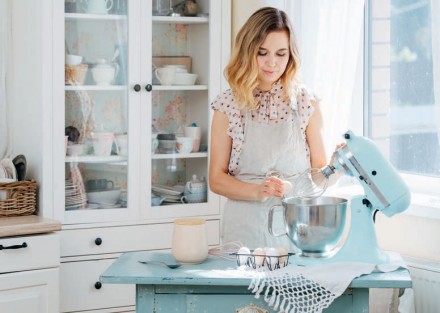 Samodzielne wypieki to wielka przyjemność dla naszych kubków smakowych oraz wymierna korzyść dla naszego zdrowia. Ciasta, rogale czy chleb domowego wypieku są z reguły zdrowsze i smaczniejsze, a przy tym często tańsze od tych ze sklepu. Pieczenie może też pomóc się zrelaksować czy odkryć artystyczne talenty. Niezbędnym elementem wyposażenia domowego cukiernika są odpowiednie formy – mogą być ceramiczne, blaszane, silikonowe, szklane lub aluminiowe. Mają tysiące kształtów, dzięki czemu możemy w nich upiec muffinki, keksy, baby czy tarty, a nawet piętrowe torty. Ogromny wybór foremek mamy także do wykrawania ciastek, np. pierniczków. W procesie przygotowania wypieków konieczny jest sprzęt pomocniczy. Do niezbędnych należą kuchenna miarka, a także waga, która powinna być wyjątkowo czuła. Składnikiem większości wypieków jest mąka. By podnieść jej walory, trzeba korzystać z sitka do przesiewania. Pozwoli nam ono pozbyć się z niej zanieczyszczeń oraz grudek i napowietrzyć ją. Do mieszania składników wykorzystamy mikser z wymiennymi końcówkami – jedne służą do ucierania ciasta, inne do ubicia piany z białek. Gotową masę wymieszamy i wyłożymy do formy szpatułką, np. silikonową. Do wyrabiania ciasta przydadzą się misy ze stali nierdzewnej – nie tylko wymieszamy w nich niezbędne produkty, ale także rozpuścimy czekoladę w kąpieli wodnej. Niektóre specjalnie do tego przeznaczone zaopatrzone są w długi uchwyt i haczyk do zawieszenia na garnku. Ciasto przygotowujemy też na stolnicy. Najbardziej popularne są drewniane lub bambusowe z wysokim rantem. Gdy miejsca w kuchni jest mało, możemy wybrać silikonową matę. Zaopatrzmy się też w wałek, wykonany z drewna, kamienia lub silikonowy.