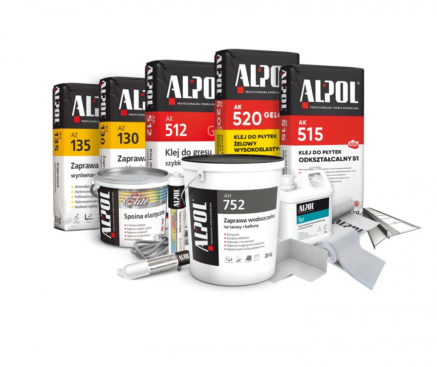 ALPOL AH 752 (Rodzaj CM, typ O1P) nakładana co najmniej w 2 warstwach. Jej parametry są deklarowane zgodnie z normą PN-EN 14891:2012. Jest przeznaczona do wykonywania podpłytkowych uszczelnień m.in. tarasów, balkonów, cokołów oraz montażu dodatkowych akcesoriów uszczelniających (taśm uszczelniających, narożników, mankietów). Wzmocniona włóknami polimerowymi nie wymaga dodatkowego zbrojenia. Wykazuje dużą przyczepność do podłoża, wodoszczelność, elastyczność, odporność na powstawanie rys w podłożu oraz działanie zmiennych warunków atmosferycznych, czyli wszystkie cechy niezbędne dla tego typu produktu. Po związaniu tworzy powierzchnię zapewniającą prawidłową przyczepność dla zapraw klejowych.